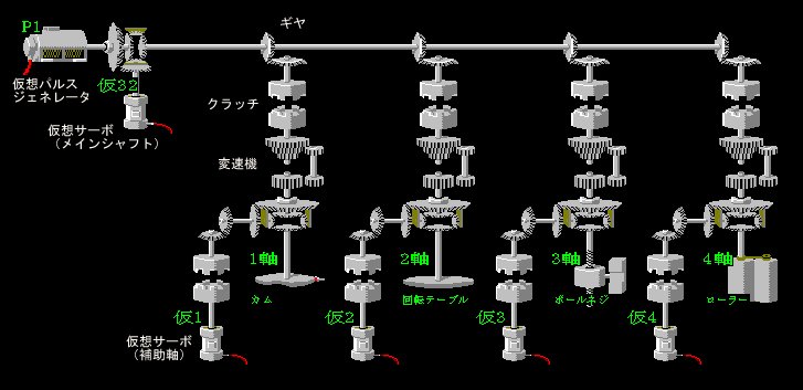 ![]() | 仮想サーボを補助軸に配置し、メインシャフト側クラッチを切って単独運転する時などに使用 |